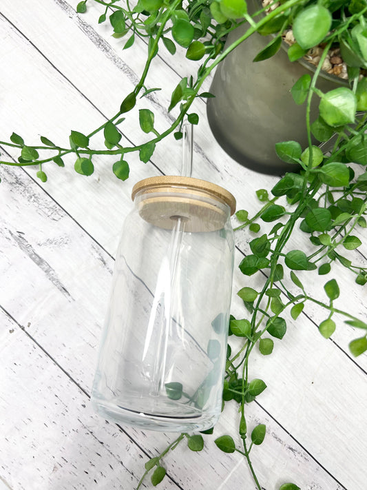 10 x Blank 16 oz Beer can with Bamboo lid and Glass straw